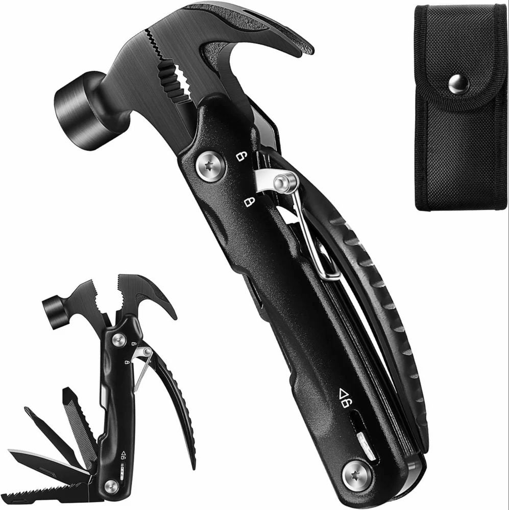Usage/Application Outdoor for Camping Hiking Household Material Stainless Steel Colour Black ideal for Man Number Of Piece 1 12-in-1 Multifunctional Tools This hammer multi-tool includes knives, pliers, hammers, screwdrivers, files, saws and other commonly used...