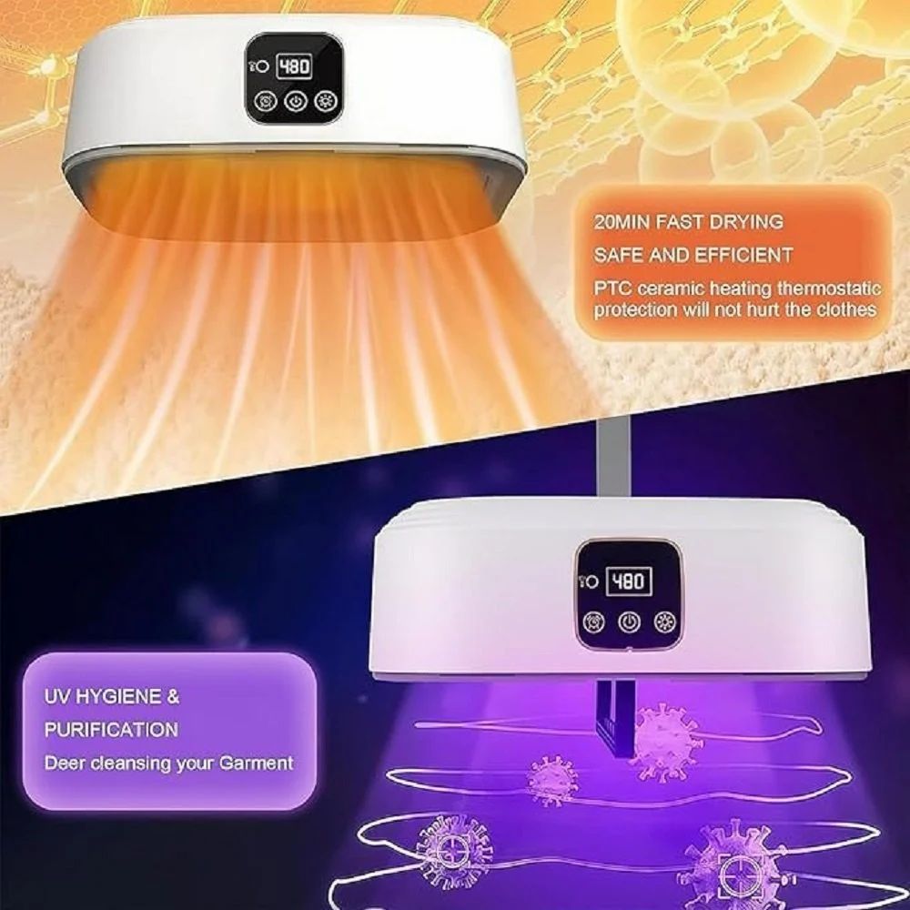 Cash on Delivery availableDescriptionFast Drying & 2 Modes: This 600W, 110V portable dryer swiftly dries your clothes with powerful airflow and heat. Bid farewell to damp garments. Its gentle mode (40-50°C warm air) suits delicate fabrics, while the hot air mode (50-60°C) quickly dries cotton, linen, nylon, and polyester. Dry up to 8 thin garments at once. Timer Function: Use the 1H/2H/8H timer function to set your preferred drying time, allowing you to focus on other tasks while your laundry dries perfectly. Efficient & Space Saving: Measuring 8.7 x 3.9 x 11.4 inches, this compact and portable dryer is ideal for small living spaces like apartments, dorms, RVs, or travel. Its space-saving features allow easy storage when not in use, maximizing limited space.